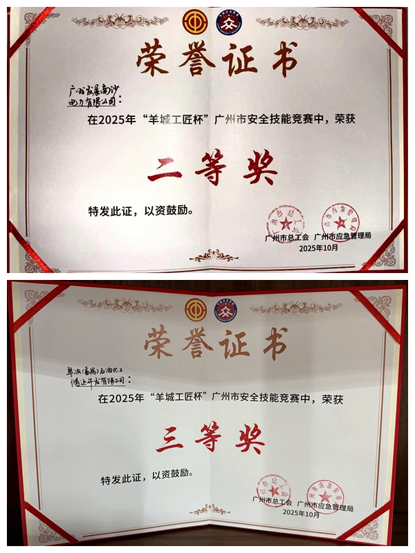 ??10月23日至24日,由廣州市總工會、廣州市應急管理局主辦,廣州交投集團承辦的2025年“羊城工匠杯”廣州市安全技能競賽在智通廣場火熱舉行。廣州發展集團榮獲優秀組織單位獎,南沙電力公司隊、粵海石油公司氣罐長紅隊憑借扎實的理論功底和過硬的實操技能,從全市82家單位、99支隊伍中脫穎而出,分列第二名和第六名,分別榮獲團隊二等獎和團隊三等獎,充分展現了廣州發展集團職工卓越的安全技能素養和良好的團隊協作精神。